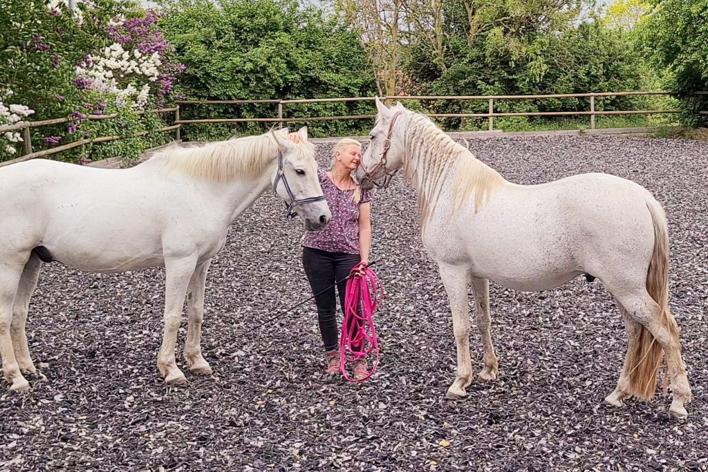Ich nehme seit einiger Zeit regelmäßig mit meinem Tinkermix Unterricht bei Bettina. Seit dem wurde alles „leicht“ und „schön“. Ich verbringe jetzt schöne Zeit mit meinem Pferd weil es uns beiden Spaß macht zu lernen. Bei ihr geht es nicht nur ums Reiten, sondern um eine tiefe Verbindung und Kommunikation mit dem Partner Pferd. Sie kann wunderbar die komplexen Zusammenhänge von Biomechanik und Hilfengebung verständlich und nachvollziehbar erklären.